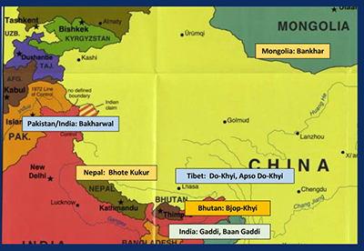 The local names of these dogs are Bankhar, Do-Kyhi, Apso Do-Khyi, Bhote Kukur, Bjop-Khyi, Bakharwal, Gaddi, and Baan Gaddi.